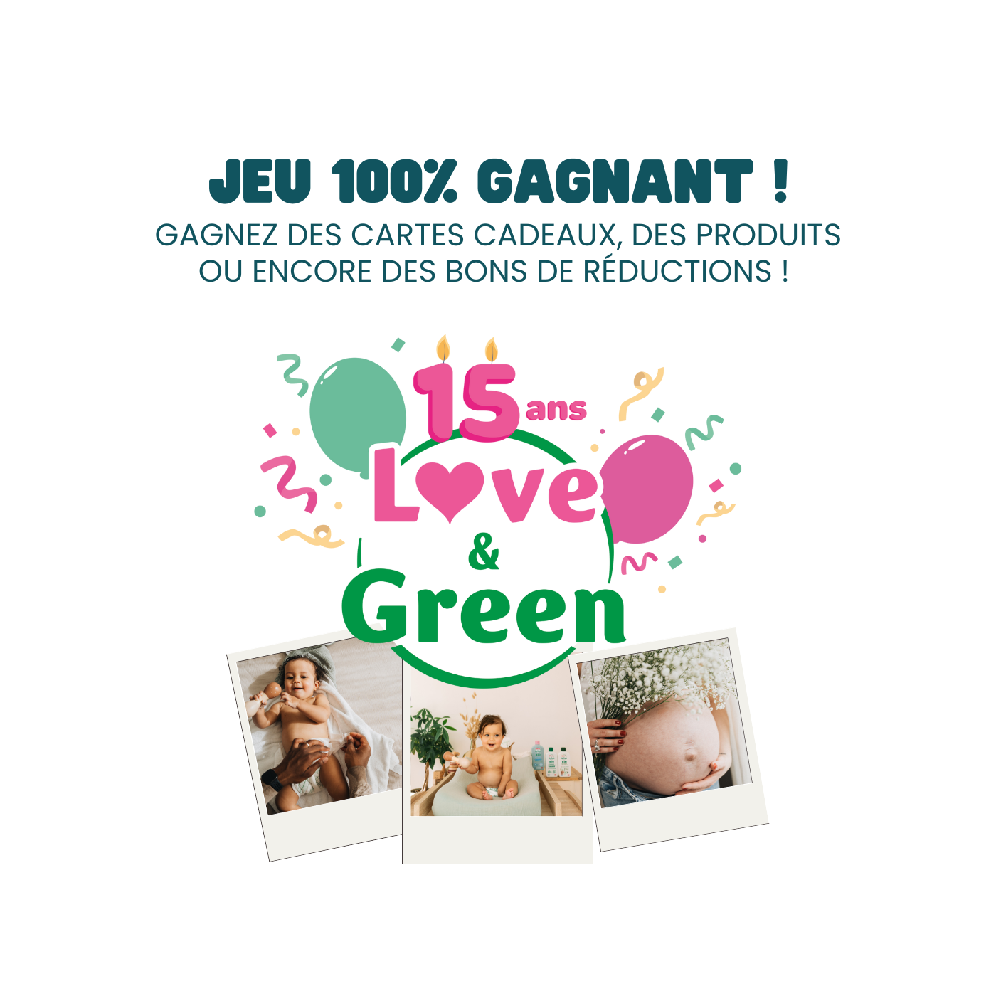Pour l'achat d'un produit Love & Green, tentez de gagner une carte cadeau de 50€ à utiliser sur notre site loveandgreen.fr, des produits ou encore des bons de réduction !